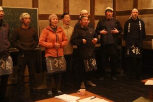 蔵人の1人が酒造り唄を口ずさみはじめ